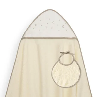Okrycie kąpielowe 100x100 Esrellas beżowy ręcznik z kapturkiem + śliniaczek
