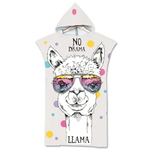 RĘCZNIK PONCZO KĄPIELOWE, PONCZO PLAŻOWE DLA DZIECI ŚREDNIEJ GRUBOŚCI, RĘCZNIK NA BASEN Wzór: NO DRAMA LLAMA, kolor: BEŻOWY