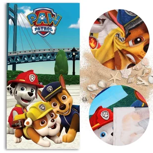 Psi Patrol Chase Marshall Rubble SZYBKOSCHNĄCY Ręcznik plażowy, kąpielowy dla dzieci BAWEŁNIANY 70x140 cm OEKO-TEX