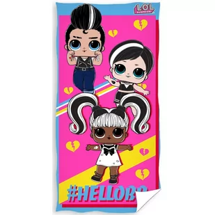 Siatkowe lalki L. O. L na ręczniku dziecięcymRęcznik kąpielowy dla dzieci L. O. L. Surprise Black and White Show jestwykonany w 100% z bawełny Ręcznik ma wymiary 70x140 cm i gramaturę 300 g/m² Twarz ręcznika frotte przedstawia lalki L. O. L. prezentujące swój pokaz mody w czarno-białym stylu Aby wyróżnić ich doskonałe stroje i fryzury, stworzyły wybieg w kolorze różowym, żółtym i jasnoniebieskim Dzięki temu ręcznikowi dołączmy do ich najnowszego "Czarno-białego pokazu" Kolorowa strona ręcznika wykonana jest z delikatnie ciętej frotte, weluru, bardzo przyjemnego w dotyku Odwrotna strona to ciasno tkana pętelka frotte w kolorze białym Ręcznik kąpielowy posiada certyfikat Oeko-Tex Standard100 Oprócz ręczników kąpielowych w naszej ofercie znajdziesz również pościel, poduszki i ręczniki z laleczkami L. O. L Pierzręcznik kąpielowyzgodnie z symbolami na metce Nie używaj detergentów zawierających środki wybielające i rozjaśniająceWykręcaj z mniejszą prędkością, aby uniknąć zerwania, a tym samym trwałego uszkodzenia włókien bawełnyNie zalecamy stosowania zmiękczaczy do tkanin, mogą one sklejać włókna, a tym samym zmniejszać chłonność Odcienie kolorów na zdjęciach mogą się różnić w zależności od ustawień monitora Ręcznik plażowy LOL Surprise Hello 70 x 140 cmŚwietnie wygląda na plaży lub przy basenie, a nawet w łazience.