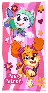 Różowy ręcznik kąpielowy Psi Patrol Everest i Skye 70 x 140 cm