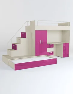 Zestaw Raj 5 to kompleksowe rozwiązanie do pokoju dziecka lub nastolatka. Łączy wygodne miejsce do spania, praktyczne biurko, pojemną szafę oraz bezpieczne schodki z funkcją przechowywania, dodatkowo posiada wygodne siedzisko oraz wysuwany materac. To nie tylko oszczędność miejsca, ale i maksymalne wykorzystanie przestrzeni w atrakcyjnej formie.