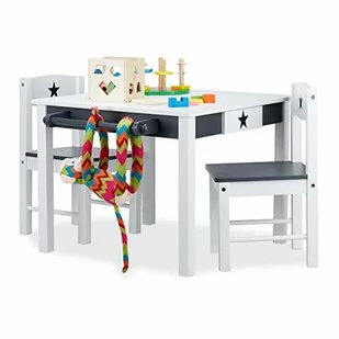 Relaxdays, biało-szary zestaw mebli do siedzenia dla dzieci Star, stół i 2 krzesła, z drewna, zestaw dla dzieci dla chłopców i dziewcząt, gwiazd, standard