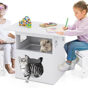 To biurko dla dzieci z krzesłem umiejętnie łączy miejsce do nauki dla dziecka z miejscem do odpoczynku dla zwierząt domowych. Ergonomicznie zaprojektowane siedzisko doskonale wspiera zdrowie kręgosłupa dziecka. Ponadto wnęka dla kotów ma przestronne wejście i przezroczyste okno, dzięki czemu dzieci mogą spędzać wyjątkowe chwile ze swoimi ukochanymi kotami. Dwie praktyczne szuflady z tkaniny pozwalają utrzymać porządek. Jest to jednocześnie biurko do nauki i stolik do zabawy, które towarzyszy dzieciom w dorastaniu wraz z ich małymi czworonożnymi towarzyszami!