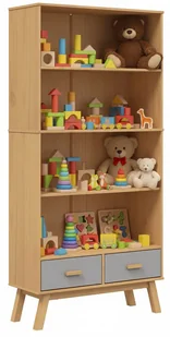 Kolekcja Hulgos marki Edinos Premium to harmonijne połączenie skandynawskiej prostoty, naturalnego uroku drewna i ponadczasowej estetyki, która doskonale odnajduje się również w przestrzeniach dziecięcych. Meble z tej linii tworzą przyjazne, ciepłe wnętrza, sprzyjające codziennemu porządkowi i komfortowi użytkowania. Hulgos to kolekcja zaprojektowana z myślą o funkcjonalnym przechowywaniu – idealna do pokoju dziecka, gdzie liczy się łatwy dostęp do zabawek, książek i dziecięcych akcesoriów. Poznaj regał na zabawki marki Edinos Premium – praktyczny element kolekcji Hulgos, który łączy estetykę naturalnego drewna z wygodą użytkowania. Cztery otwarte półki zapewniają dużo miejsca na zabawki, gry planszowe i książeczki, natomiast dwie pojemne szuflady pozwalają schować drobniejsze przedmioty, pomagając utrzymać porządek w pokoju dziecka.