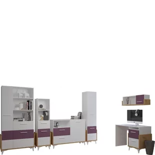 Zawartość zestawu: Bieliźniarka HEY-02 x1, Biurko HEY-03 x1, Komoda HEY-09 x1, Regał HEY-13 x1, Regał HEY-18 x1, Szafka wisząca HEY-22 x1;