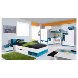 Natomiast staranne wykonanie z materiałów i komponentów o najwyższej jakości zapewnić Cię może, iż meble Mobi są bezpieczne i posłużą dziecku przez wiele lat. Zestaw mebli młodzieżowych Mobi C składa się z następujących elementów: Szafa MO2, z podwójnymi drzwiami, dwiema szufladami i otwartą wnęką, wewnątrz drążek Szafka MO4, z pojedynczymi drzwiami, dwoma szufladami i regałem, wewnątrz półki Szafka niska MO7, regał z górną szafka, dwoma szufladami i otwartymi półkami Biurko MO11, z dwoma szufladami, drzwiczkami, otwartym regałem i półką na klawiaturę Regał wiszący MO14, otwarty wiszący regał ścienny Szafka nocna MO17, z szufladą i otwartą półką Łóżko 90 x 200 z pojemnikiem MO18, łóżko z szufladą na pościel i schowkami (stelaż płytowy w komplecie)W bryle MO4 możesz zamontować drzwiczki zarówno po stronie lewej, jak i prawej. Łóżko w komplecie z prostym stelażem płytowym. Łóżko bez materaca.