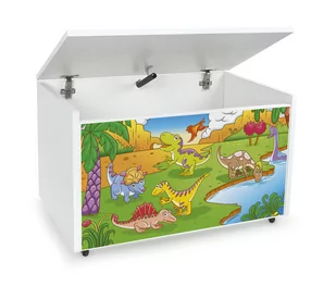 Meble do pokoju dziecięcego z kolorowym nadrukiem Dinozaurów zapewnią wnętrzu wyjątkowy charakter. Pomieszczenie stanie się bardziej przyjazne i przytulne dla Twojego dziecka. Pojemna i funkcjonalna skrzynia w kolorze białym 2 w 1. Pojemnik na zabawki oraz ławeczka do siedzenia. CECHY PRODUKTU: