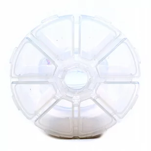 PLASTIKOWE PUDEŁKO Organizer z przegródkami - doskonały do przechowywania koralików, półfabrykatów, cekinów, sznurków lub ozdób. Średnica 10cm. Cena dotyczy 1szt.