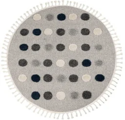 Dywan dla dzieci okrągły w kropki z frędzlami Obsession Fano FAO 394 Dywan dziecięcy w pastelowych kolorach, ozdobiony frędzlami, z miękkim runem i przestrzennym efektem 3D. Idealny do pokoju malucha, łączący delikatność z nowoczesnym designem. Producent: Obsession Kraj pochodzenia: Niemcy Skład: 80% poliester, 15% bawełna, 5% juta Efekt 3d Struktura runa:
