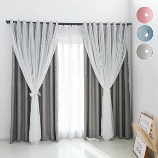 Design: Te zasłony tworzą magiczny wzór gwiazdy, wyobraź sobie fantastyczne uczucie gwiazd spadających na łóżko, podłogę i cały pokój. Kiedy zaciągniesz te gwiezdne zasłony, światło zaleje podłogę i ściany przez puste gwiazdy, jak migoczące gwiaździste niebo, tworząc ciepłą i słodką atmosferę. Funkcja: Zasłony te zapobiegają ucieczce ciepła i zapobiegają przedostawaniu się 60%-80% światła słonecznego do pomieszczeń. Zasłony te działają również jako bariery dźwiękowe, redukując hałas z ruchliwych dróg i obszarów. Są idealne do sypialni, pokoi dziecięcych, salonów i pokoi gościnnych.