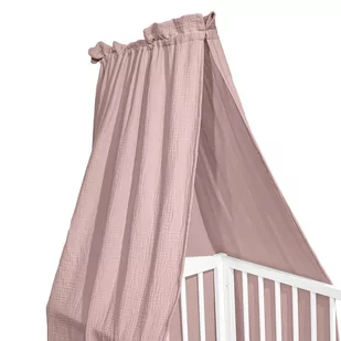Baldachim do łóżeczka wykonany z jednokolorowego muślinu bawełnianego to idealny dodatek do pokoju każdego malucha. Ten lekki i przewiewny materiał zapewni komfortowy sen oraz tworzy przytulne i magiczne otoczenie w pokoju dziecka. Muślin bawełniany jest nie tylko miękki i delikatny w dotyku, ale także bardzo wytrzymały i łatwy w utrzymaniu czystości. Baldachim posiada praktyczne i estetyczne wykończenia, takie jak ozdobne marszczenie w górnej części. Dzięki temu baldachim prezentuje się stylowo i dodaje uroku do każdego wnętrza.
