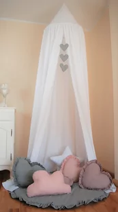 - bawełniany baldachim - okrągłą obręcz - haczyk do montażu - taśmę wydłużającą baldachim Wymiary: