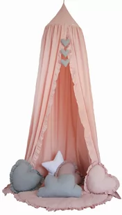 Baldachim wiszący z falbanką- BRUDNY RÓŻ Baldachim wiszący to piękny dodatek do pokoju dziecięcego. Służyć może jako niepowtarzalna dekoracja łóżeczka dziecięcego. Może także pełnić rolę przytulnego miejsca do zabawy. Powieszony nad łóżeczkiem dziecięcym osłoni przed nadmiarem światła oraz wytłumi hałasy, tworząc wewnątrz łóżeczka przytulne i bezpieczne miejsce do odpoczynku. Baldachim można łatwo zamontować do sufitu.
