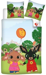 Bing Pościel bawełniana dwustronna 100x135cm Komplet pościeli dziecięcej z ulubionym dziecięcym bohaterem będzie wspaniałym pomysłem na prezent. Delikatne pastelowe kolory i trwała miękka bawełna o wzmocnionym splocie to podstawa jakości oraz gwarancja smacznych snów. Kolory zachowują swoja pierwotną barwę nawet po wielu praniach. Ulubieni bohaterowie będą towarzyszyć milusińskim przez wiele nocy. W skład kompletu wchodzą: