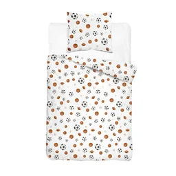 Motyw różnych piłek sportowych sprawia, że pościel ożywia pokój i tworzy inspirujące, radosne otoczenie do wypoczynku. Wykonana z wysokiej jakości bawełny 100% , gwarantuje świetną oddychalność, miękkość i komfort użytkowania. Materiał jest trwały, a kolory zachowują intensywność nawet przy częstym praniu. Pielęgnacja: prać w 40 C na delikatnym programie prasować w niskiej temperaturze prać i suszyć na lewej stronie nie stosować wybielaczy ani mocnych detergentów