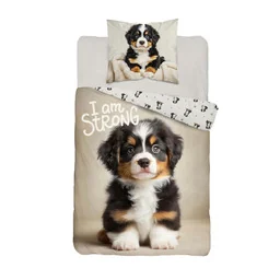 poszwa 160x200 cm, poszewki 70x80 cm (2 szt.) Zapięcie: suwak błyskawiczny wygodne użytkowanie Komplet: poszwa + dwie poszewki na poduszki Pościel z psem I am Strong z kolekcji Dream Collection łączy styl i komfort. Bawełna 100% zapewnia przewiewność i miękkość, a nadruk pozostaje intensywny nawet po wielu praniach. To pościel młodzieżowa 160x200 , która doda wnętrzu przytulności i pozytywnej energii.