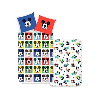 Disney Home Mickey dziecięca pościel dwustronna, zestaw 135 x 200 cm, poszewka na poduszkę 80 x 80 cm, super miękka bawełna Renforce, 100% bawełna, 2-częściowy komplet pościeli Mickey, miękka i