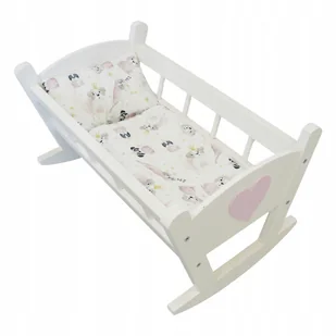 Drewniana Kołyska Dla Lalek Biała Pościel Pieski Pokój Dziecięcy