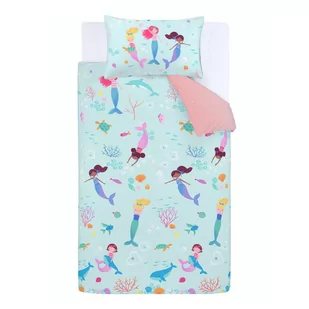 Catherine Lansfield Mermaid dwustronna poszewka na kołdrę z poszewką na poduszkę, kolor niebieski