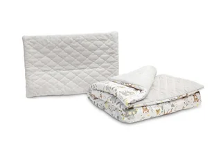Komplet dla starszaka Plusz Karo to wyjątkowy zestaw, który przyjemnie otuli do snu dzieci w wieku przedszkolnym. Poduszka i kołderka jedną stronę wykonaną mają z aksamitnego w dotyku pluszu, druga strona to drukowana bawełna ze stylowymi wzorami. Całość wypełniona jest antyalergiczną włókniną silikonową. Komplet sprawdzi się w łóżeczku, może być wykorzystywany jako miękka mata dla maluszków. Kołderka posiada wymiary 100x135, poduszka 40x60 cm.
