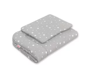 Wzór znajduje się na obu stronach poduszki i kołderki; - wypełnienie poduszki i kołderki z atestowanej włókniny silikonowanej, miękkiej i przewiewnej, o specjalnie dobranej gramaturze, tak by poduszka nie była zbyt gruba (co może być szkodliwe dla niemowląt) a jednocześnie zapewniała optymalną miękkość i sprężystość. Włóknina posiada atest Ökotex - potwierdzający jej najwyższe walory hipoalergiczne i bezpieczeństwo dla Dzieci. Włóknina jest tak dobrana, aby zapewnić najlepsze parametry cieplne, bez ryzyka przegrzania dziecka, a przy tym by była lekka i oddychająca; - Starannie uszyty, z dodatkowym przeszyciem i przepikowaniem, aby komplet nie odkształcał się nawet po wielu praniach; Całość można prać w pralce, komplet szybko schnie i nie zmienia kształtu; Wymiary odpowiednie dla niemowlaka, do łóżeczka czy też kołyski lub kosza, tak by łatwo otulić dziecko: