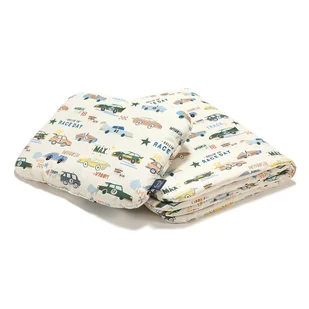 Komplet pościeli z wypełnieniem, wykonany z najwyższej jakości bawełny. W skład zestawu wchodzi miękka kołderka oraz poduszka. Wypełnienie to antyalergiczne włókno poliestrowe, które zapewnia właściwą temperaturę, dostęp tlenu i odprowadzanie wilgoci, a w efekcie doskonały komfort snu. Promujemy modę na pościel "ready to use", czyli z wszytym wypełnieniem. Obecnie na rynku królują poszewki i oddzielnie kupowane kołdry oraz poduszki. My chcemy to zmienić i zachęcić do prania za każdym razem całości, a nie tylko wierzchu, uzyskując tym samym 100% czystości, co w przypadku alergików jest niezwykle istotne. Pościel La Millou można prać w pralce bez uszczerbku na jakości. Pościele są dostępne w wielu rozmiarach. Komplet pościeli bawełnianej w rozmiarze M sprawdzi się u maluszków do 2 roku życia, pościel L jest przeznaczona dla dzieci od 2 do 5 lat, natomiast pościel XL i XXL sprawdzi się od 6 do 106 roku życia :-). Poduszki w pościelach M i L są niemal płaskie, tak by zapewnić maksyma
