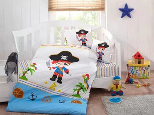Zapinana na bezpieczny zamek. Posiada mocne szwy prześcieradło bez gumki: 110 x 170 cm - 1 szt - świetnie pasuje do różnych rozmiarów materacy Komplet pościeli 3 elementowy Pościel dziecięca PIRAT wykonana w 100% z bawełny o delikatnym, gładkim, satynowym splocie. Rozmiar pościeli może się różnić o +/- 3cm Materiał, z którego wykonano pościel można prać w pralce automatycznej. Wszystkie nasze produkty są oryginalnie zapakowane.