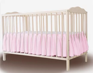 Falbana zakładana pod materacykiem, rozm. 140x70 cm, z falbaną gęsto marszczoną na wszystkie boki łóżeczka. Środek stanowi biała tkanina bawełniana, która może służyć jako zwykłe prześcieradło (założone na materac). Falbana pięknie uzupełnia kompletnie pościelone łóżeczko. Falbana nie tylko maskuje to co znajduje się pod łóżeczkiem, ale również pięknie dekoruje łóżeczko maluszka.