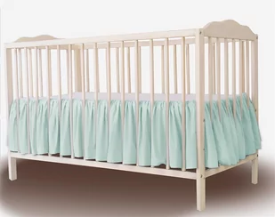 Falbana zakładana pod materacykiem, rozm. 140x70 cm, z falbaną gęsto marszczoną na wszystkie boki łóżeczka. Środek stanowi biała tkanina bawełniana, która może służyć jako zwykłe prześcieradło (założone na materac). Falbana pięknie uzupełnia kompletnie pościelone łóżeczko. Falbana nie tylko maskuje to co znajduje się pod łóżeczkiem, ale również pięknie dekoruje łóżeczko maluszka.