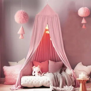 - Oddychająca moskitiera baldachimowa nad łóżeczko niemowlęce w przepięknym stylu.
