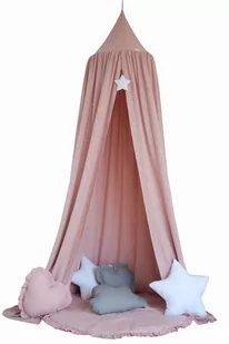 Przepiękny muślinowy baldachim w mieniące się gwiazdki Kolor: BRUDNY RÓŻ w srebrne gwiazdki Baldachim wiszący to piękny dodatek do pokoju dziecięcego. Tkanina muślinowa, z której jest uszyty, jest wyjątkowo miła i delikatna w dotyku. Dodatkowo, nie jest prześwitująca i świetnie przepuszcza powietrze dzięki czemu dziecko swobodnie w nim oddycha. Baldachim służyć może jako dekoracja nad łóżeczkiem lub pełnić rolę przytulnego miejsca zabaw.
