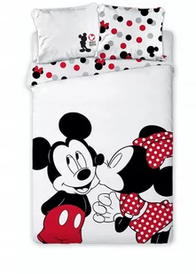 Pościel dziecięca Minnie i Mickey 140 x 200 cm Pościel dziecięca z motywem bajki Disney Skład zestawu: 1x poszwa na kołdrę o wymiarach 140 x 200 cm 1x poszewka na poduszkę o wymiarach 63x63 cm Materiał: 100% polyester Pościel należy prać w temperaturze 30°C. Komplet pościeli zapakowany jest w ozdobny woreczek. Pościel wykonana została z bardzo dobrego jakościowo materiału, nie farbuje i zachowuje kolor po praniu.