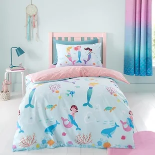 Catherine Lansfield Dwustronna poszewka na kołdrę z poszewką na poduszkę, syrenka, kolor niebieski