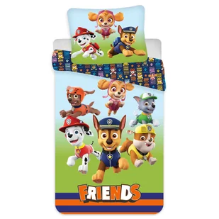 POŚCIEL DZIECIĘCA 100x135 BAWEŁNIANA Z BOHATERAMI PSI PATROL – FRIENDS Przyjaciele zawsze trzymają się razem! Na tej pościeli biegną ramię w ramię ulubieni bohaterowie Psi Patrol – Chase, Skye, Marshall, Rubble, Zuma i Rocky. Wesoła grafika „FRIENDS” przypomina o sile drużyny, odwadze i dobrej zabawie. Energetyczne kolory ożywią pokój i zaproszą do snów pełnych przygód. Komplet uszyto z 100% bawełny – naturalnej, miękkiej i przewiewnej. Tkanina dobrze oddycha i odprowadza wilgoć, dzięki czemu dziecko śpi komfortowo przez cały rok.