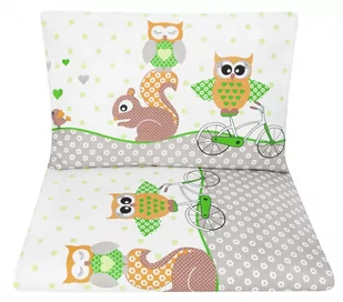 Wzór: Sowy na rowerach zielone Zestaw i wymiary: Poszewka na kołderkę 120x90 cm, poszewka na poduszkę 60x40 cm, kołderka 120x90 cm, poduszka 60x40 cm Polski produkt Tuppi: Najlepsza jakość, lokalnie szyte produkty 100% bawełna: Oddychająca, atestowana i nieszkodliwa tkanina dla Twojego dziecka Antyalergiczna: Pewne zabezpieczenie dla skóry malucha Miękka i przyjemna w dotyku: