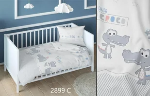 KARO Pościel bawełniana 140x200 krokodyle biała szara dziecięca zapinana na suwak 2899 C Kraina Snów