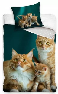 POŚCIEL KOTY Produkt jest przyjazny i bezpieczny dla zdrowia, co potwierdza certyfikat 'Confidence in textiles' (tekstylia godne zaufania). Materiał: 100% bawełna Zapięcie: zamek błyskawiczny Rozmiar: poszwa- 160x200 cm; poszewka - 70x80 cm
