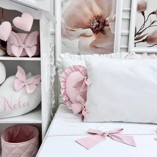 Pościel biała z różowymi kokardkami i dla dzieci i nastolatków różne rozmiary