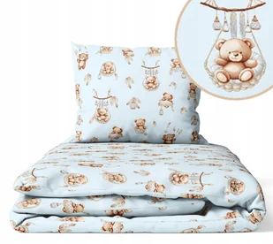 Komplet pościeli 2 elementowy Wzór: Misie w Koszykach na Niebieskim Poszewka kołderki - 160x120cm Poszewka poduszki - 70x50cm Zapinana na bezpieczny zamek Po...