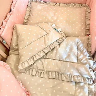 Pościel dla dzieci beżowa w kropki z falbanką 100x135 cm