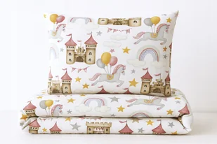 Pościel dla dziecka 140x200 różowa biała zamek tęcza balony bawełniana