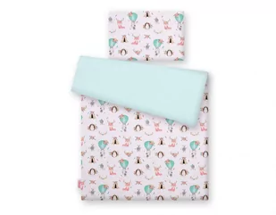 Pościel dla niemowląt 2-częściowa bawełniana - beżowe liski/jasna mięta
