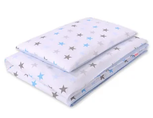 Pościel dla niemowląt 2-częściowa bawełniana - gwiazdki szaro-niebieskie