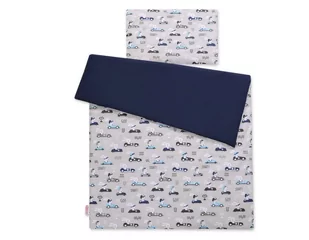 Pościel dla niemowląt 2-częściowa bawełniana - zające w autkach szare