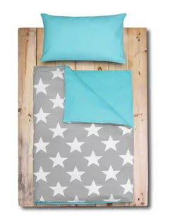 BELLA STORIA POŚCIEL DZIECIĘCA DUALE BABY SZARA W GWIAZDY + TURKUS 100X135 Z PLECAKO-WORKIEM Komplet pościeli z kolekcji Duale Baby to idealne rozwiązanie dla rodziców, którzy szukają prostego i nowoczesnego rozwiązania do pokoju swojego dziecka. Dwustronna pościel - z jednej strony turkusowa, z drugiej - szara w gwiazdy -jest delikatna w dotyku. Pościel została wykonana ze 100% bawełny - materiał posiada jednorodną powierzchnię i cechuje się wysoką jakością przędz. Możliwość prania pościeli w temperaturze 60°C ułatwia pozbycie się bakterii i drobnoustrojów. DOPASUJ ROZMIAR Standardowo komplet pościeli składa z poszwy na kołdrę w rozmiarze 100x135 cm oraz jednej poszewki w rozmiarze 40x60.