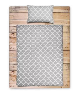 BELLA STORIA POŚCIEL DZIECIĘCA BABY MAROKO SZARE 100X160 Z PLECAKO-WORKIEM Komplet pościeli z kolekcji Baby Maroko to idealne rozwiązanie dla rodziców, którzy szukają prostego i nowoczesnego rozwiązania do pokoju swojego dziecka. Pościel w modnym wzorze marokańskiej koniczyny została wykonana ze 100% bawełny - materiał posiada jednorodną powierzchnię i cechuje się wysoką jakością przędz. Możliwość prania pościeli w temperaturze 60°C ułatwia pozbycie się bakterii i drobnoustrojów. Komplet składa się z poszwy na kołdrę o wymiarze 100x160 cm oraz jednej poszewki na poduszkę o wymiarze 50x60 cm. Wszystkie elementy są zapinane na zamek błyskawiczny, który jest zakryty w poszwie.