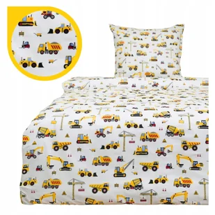 Pościel Dziecięca 120x160 + 70x80 Koparki Żółte Na Białym Bawełna 100%