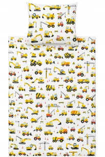 Pościel dziecięca 200x140 chłopięca Koparki budowa żółte na białym tle