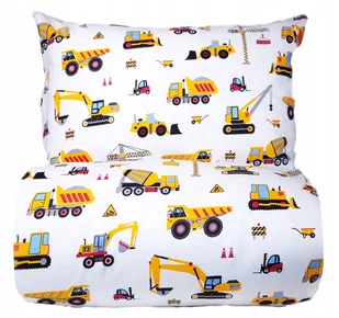 Pościel koparki autka pojazdy maszyny 140x200 dziecięca biała bawełniana